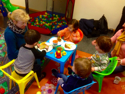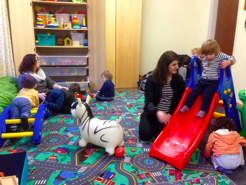 Eine Krabbelgruppe für die kleineren Kinder trifft sich montags vormittags.