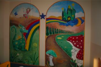 Die Räume des Mini-Kindergartens umfassen 2 Spielräume, eine Küche, wo gemeinsam gefrühstückt wird sowie eine Wickelecke und ein kleines Bad. Dazu besteht die Möglichkeit einen weiteren Raum des Mütterzentrums zum Toben zu nutzen. Und bei gutem Wetter steht der Hof zum Bobbycarfahren etc. bereit.