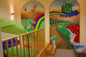 Die Räume der Mini-Mützen umfassen 3 Spielräume (darin 1 Toberaum mit Turnmöglichkeiten und 1 gemütlicher Ruheraum), eine Küche, wo gemeinsam gefrühstückt und zu Mittag gegessen wird sowie eine voll ausgestattetes Kinderbad. Das Außengelände lädt bei gutem Wetter zum Klettern, Rutschen, Schaukeln, Sand spielen, Bobbycarfahren etc. ein.